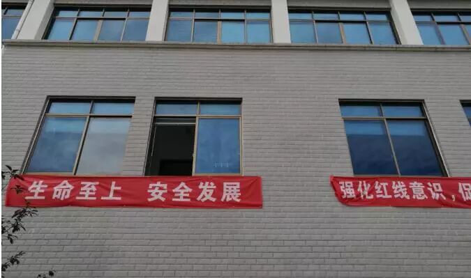 “生命至上、安全发展”“强化红线意识,促进安全发展”等安全生产横幅。