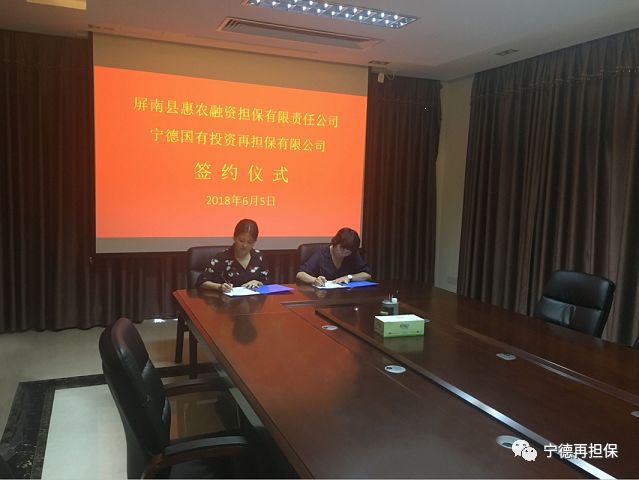 屏南县惠农担保业务部负责人陈玉成、陆观成,宁德再担保公司总经理龚林辉,副总经理原萍及各部室负责人参加签约仪式。